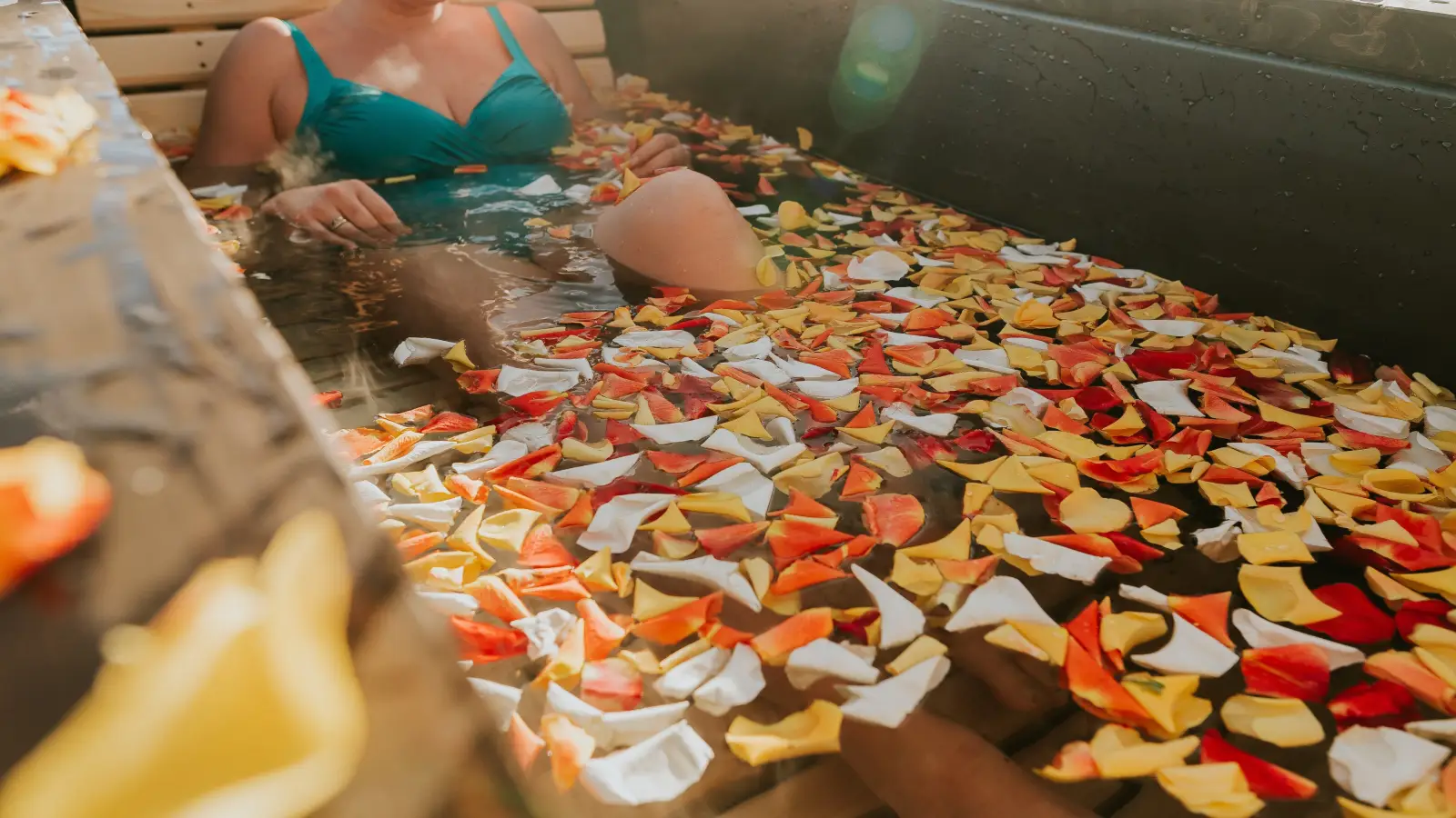 Kąpiel w ciepłej wodzie odpręża i rozluźnia mięśnie. Wspiera regenerację, redukuje stres. Kąpiel w otoczeniu przyrody dodatkowo uprzyjemnia ten czas, tak samo, jak towarzystwo drugiej osoby.